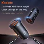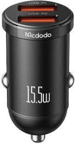 شارژر فندکی Mcdodo CC-2950 با دو پورت USB-A، توان ۱۵.۵ وات، بدنه آلومینیومی مقاوم و تراشه هوشمند محافظ — گزینهای امن، جمعوجور و کارآمد برای شارژ همزمان دو دستگاه در خودرو.